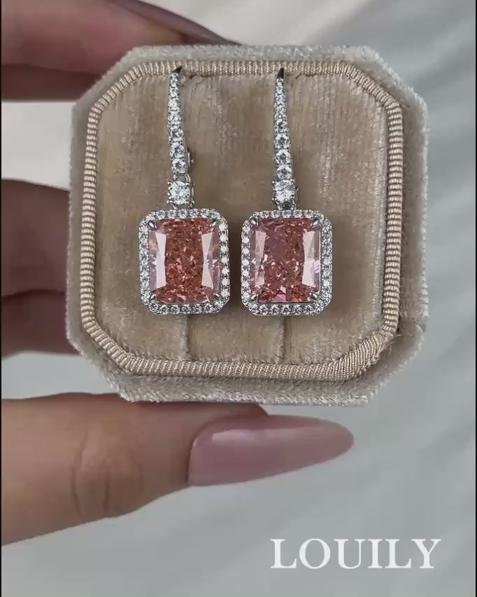 These earrings were created for the woman who delights in soft, romantic color, featuring brilliant 5.0 carat pink radiant cut stones that catch the light from every angle. Crafted in sterling silver, they showcase an elegant drop design that adds subtle movement and sophistication to any ensemble. Perfect for dressing up a special occasion or adding a pop of color to everyday style, they bring a sweet yet refined charm to your jewelry collection.