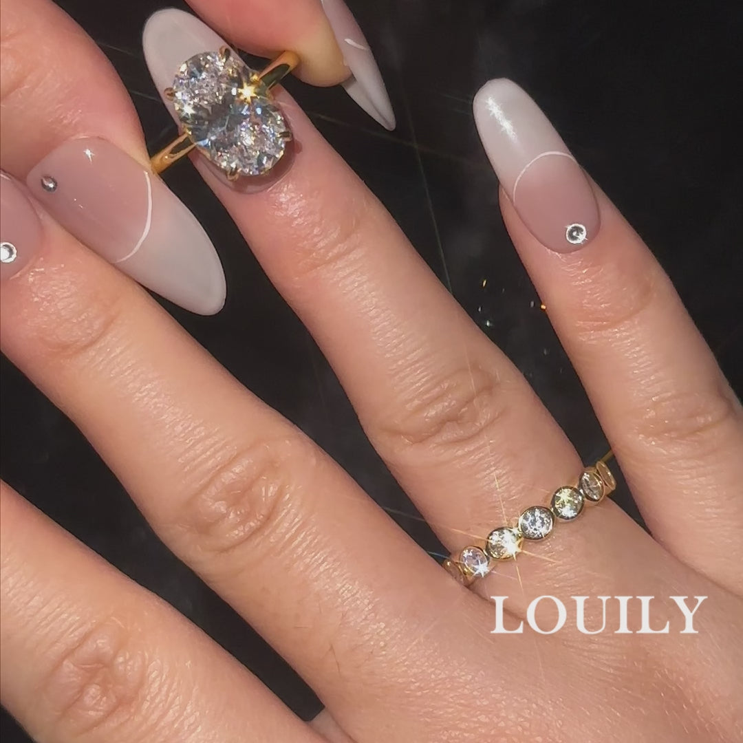 Design Inspiration:This 2-piece engagement ring and wedding band set is inspired by timeless elegance and eternal love. The 4.5-carat oval-cut center stone symbolizes clarity, grace, and the beautiful journey two souls share together. Its elongated shape enhances brilliance while creating a refined and sophisticated presence on the hand.
