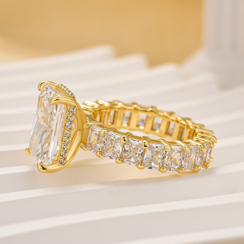 5.0Ct Radiant Cut Hidden Halo Luxe Engagement Ring In Sterling Silver