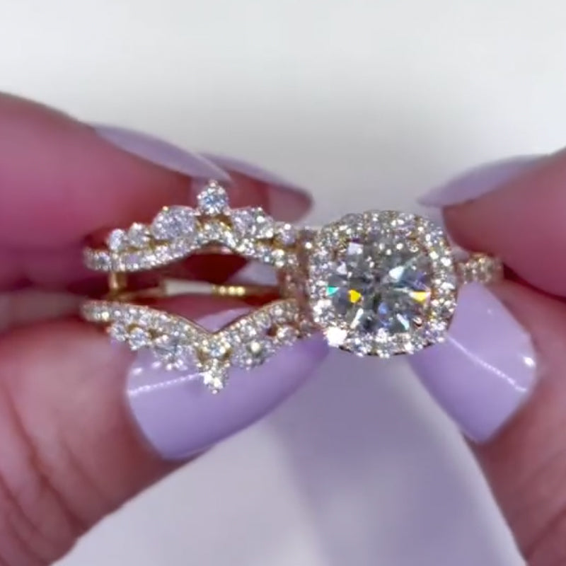 Halo Round Cut 2.0Ct Insert Wedding Ring With Vintage Engagement Ring Enhancer