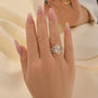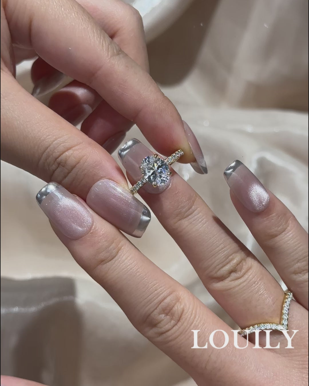 Design Inspiration:This ring set is inspired by love that flows gracefully and with purpose. The 2.0ct oval-cut engagement ring symbolizes a bond that is gentle yet steadfast, its smooth curves reflecting the warmth and care shared between two hearts. The V-shaped full wedding band complements the engagement ring, representing the twists and turns of life embraced together with elegance and unity. Together, the three pieces form a harmonious story of a love that is enduring, balanced, and beautifully intertwined.