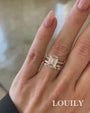 This three-piece ring set was designed for the woman who appreciates clean lines and timeless shapes, featuring a stunning 3.5 carat emerald cut center stone complemented by a marquise cut wedding band and a matching emerald cut wedding band. Crafted in sterling silver, each piece offers a unique silhouette that harmonizes perfectly, making this set ideal for both special occasions and everyday wear. Celebrate your journey with a look that’s bold yet elegant.