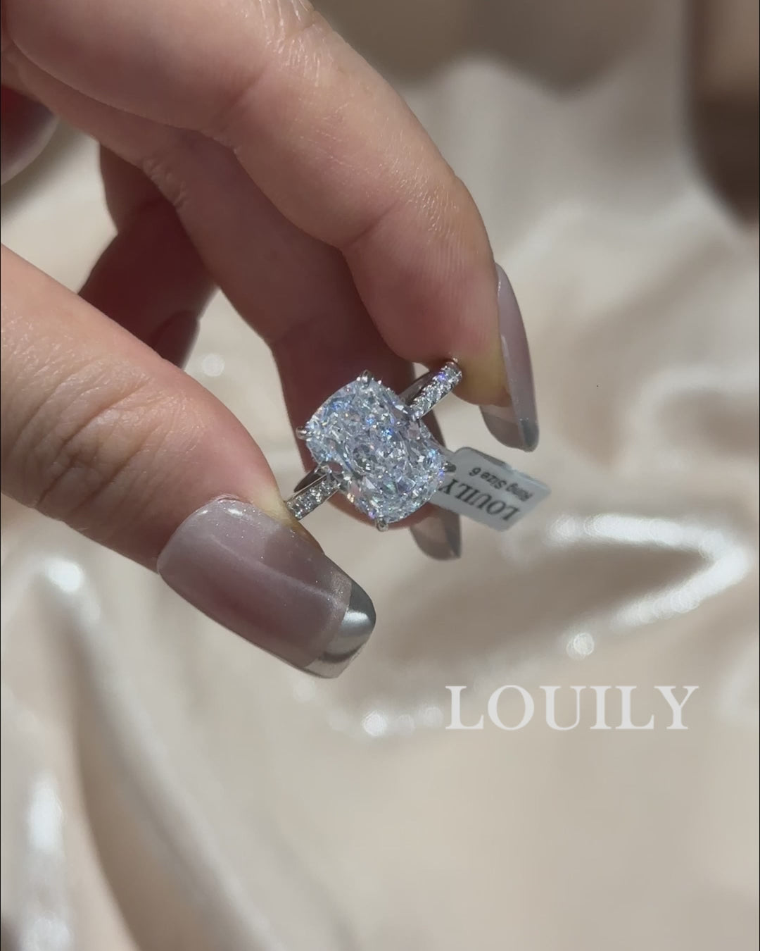 Design Inspiration:This ring set is inspired by the openness and strength of a love that grows naturally and shines boldly. The 5.5ct cushion-cut engagement ring reflects a softness filled with brilliance, symbolizing moments of tenderness that become brighter over time. The open classic wedding band represents the space within a relationship where understanding, trust, and support can flourish. Together, the three pieces form a harmonious story of a love that is generous, radiant, and built to last.