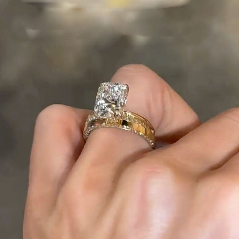 3PC Wedding Sets 6.5Ct Elongated Cushion Cut Wedding Ring Set With Classic Wedding Bands