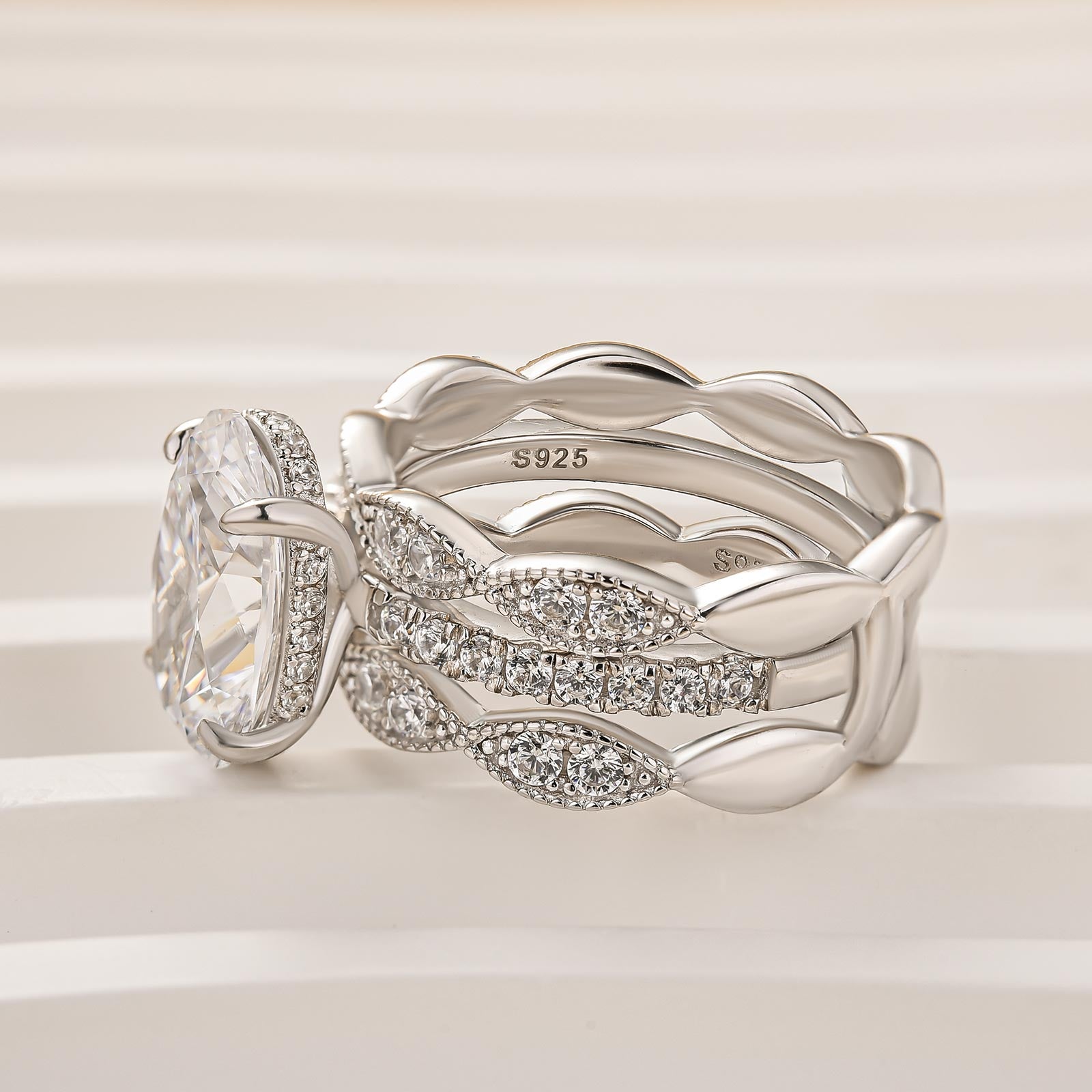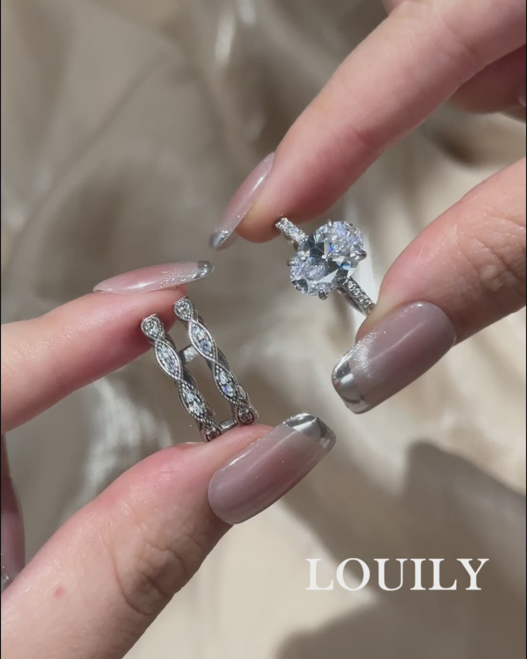 Design Inspiration:This romantic 4.0Ct gemstone ring set features an elegant oval-cut center stone, radiating timeless beauty and sophistication. The oval shape symbolizes a love that endures through time, while the round-cut gemstones along the bands add a soft, sparkling touch. The intertwining design of the bands mirrors the unity and connection between two hearts, flowing gracefully with each curve. This set is a perfect representation of a love that is both bold and delicate, capturing the essence of forever.