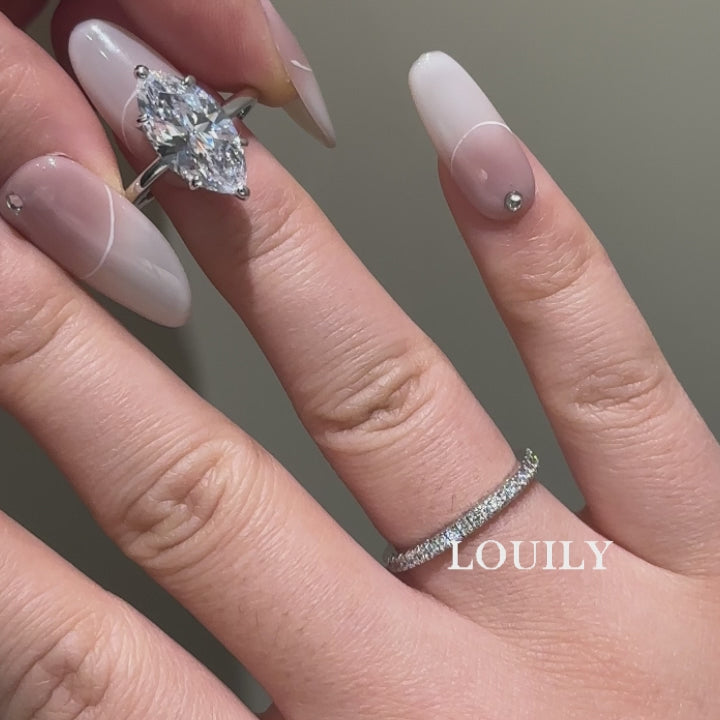 S925 2PC 4.0Ct Solitaire Marquise Cut Engagement Ring with Pave Band