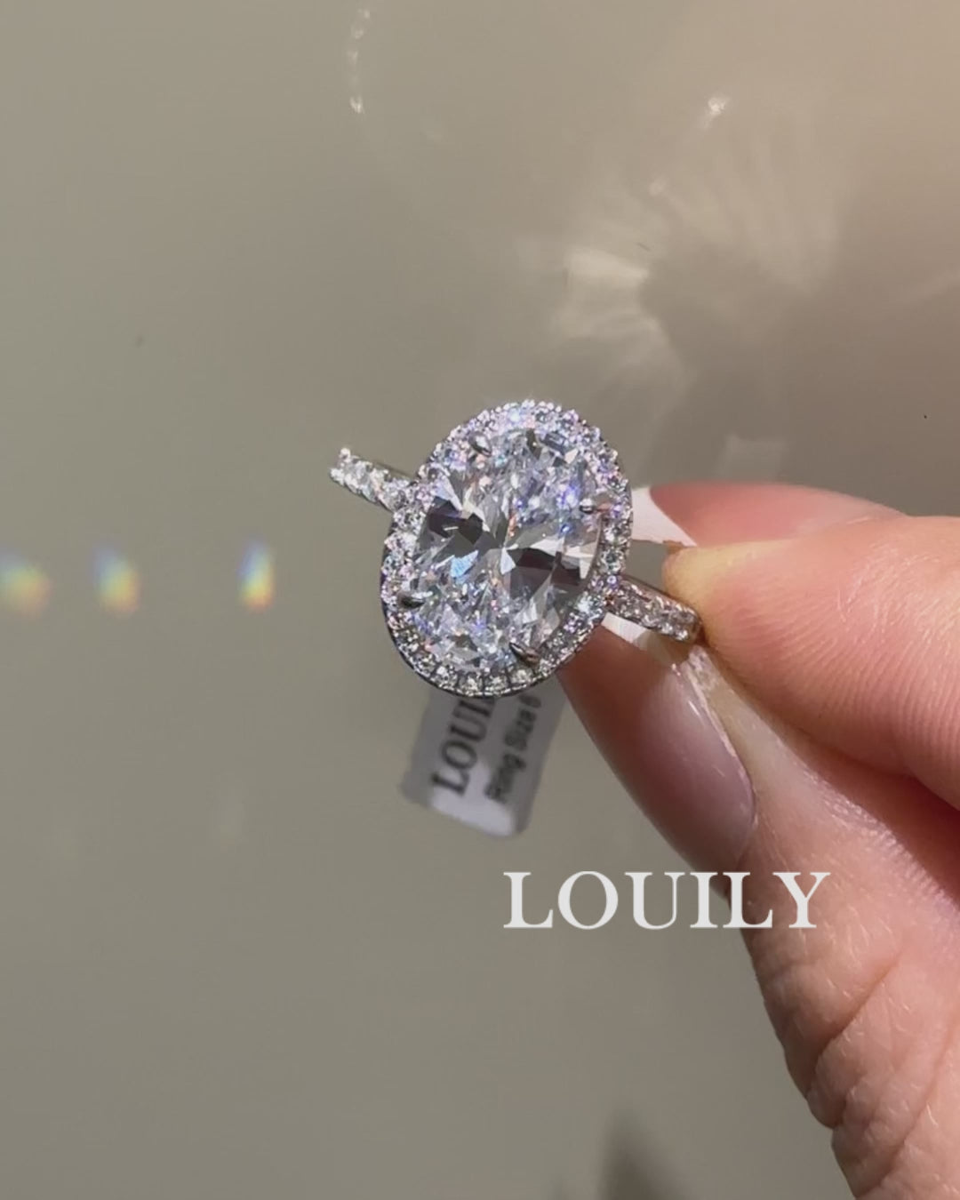 Louily Exquisite Halo Oval Cut Engagement Ring For Women In Sterling Silver