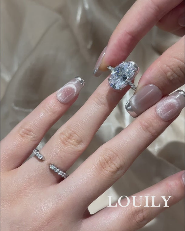 This 3PC oval cut wedding ring set captures the essence of timeless romance with a modern twist. The oval center stone exudes soft brilliance, while the open pavé bands create a sense of movement and lightness — like two souls drawn together yet free to shine on their own. Crafted in 18K white gold, the design balances classic beauty with contemporary sophistication, symbolizing a love that feels effortless, radiant, and endlessly connected.
