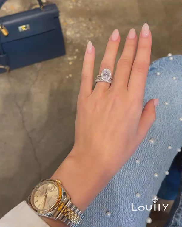 Louily Exclusive Halo Oval Cut 3PC Wedding Set