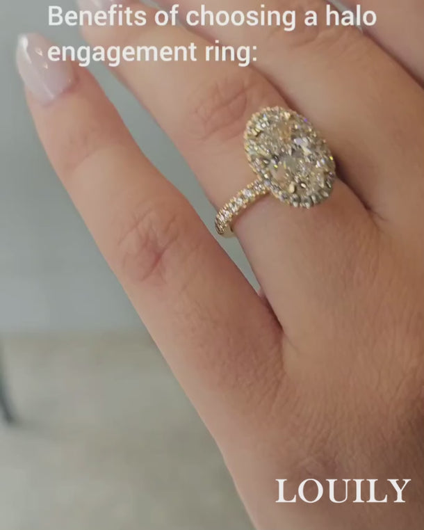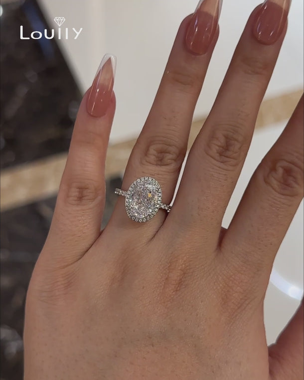 Louily Exquisite Halo Oval Cut Engagement Ring For Women In Sterling Silver