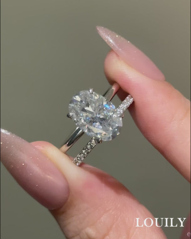 Louily Moissanite 4.0 Ct Hidden Halo Solitaire Oval Cut Wedding Ring