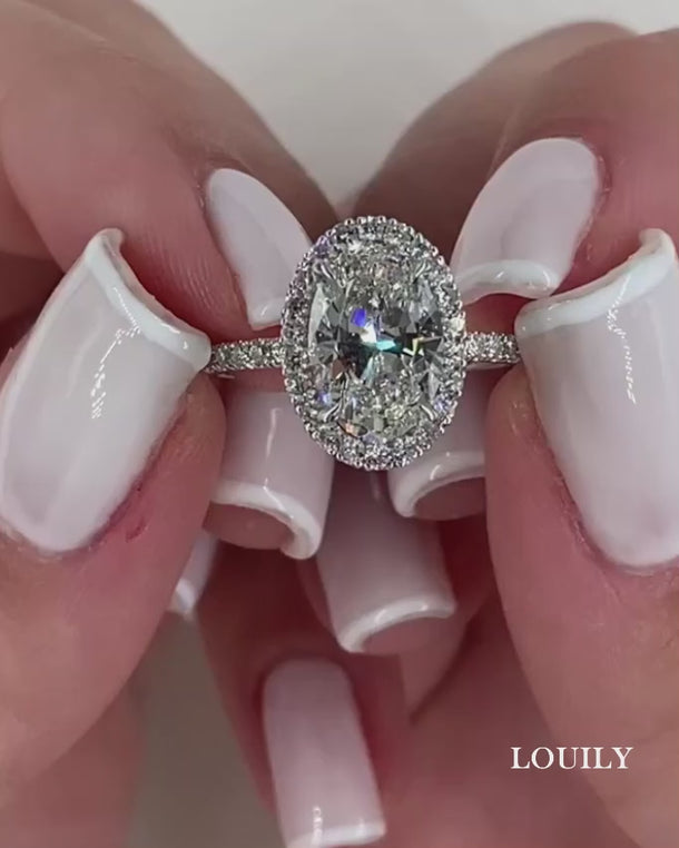 Louily Moissanite 4.5 Carat Halo Oval Cut Engagement Ring