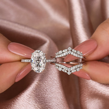 Moissanite 4.0 Ct Oval Cut Insert Wedding Ring Set With Jacket Stack Wedding Band
