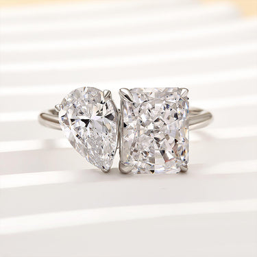 Louily Double Stones Radiant & Pear Cut Toi Et Moi Engagement Ring In Sterling Silver