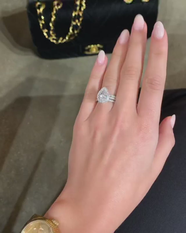 Louily Exquisite Halo Pear Cut 3PC Wedding Ring Set In Sterling Silver