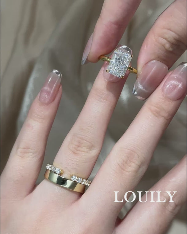 3PC 4.5Ct Radiant Cut Engagement Ring Wedding Ring Set With Open And Plain Bands