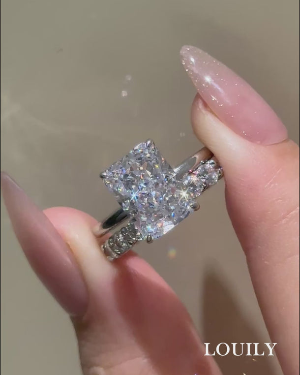 5.0Ct Radiant Cut Promise Ring For Her With Round Cut Wedding Band