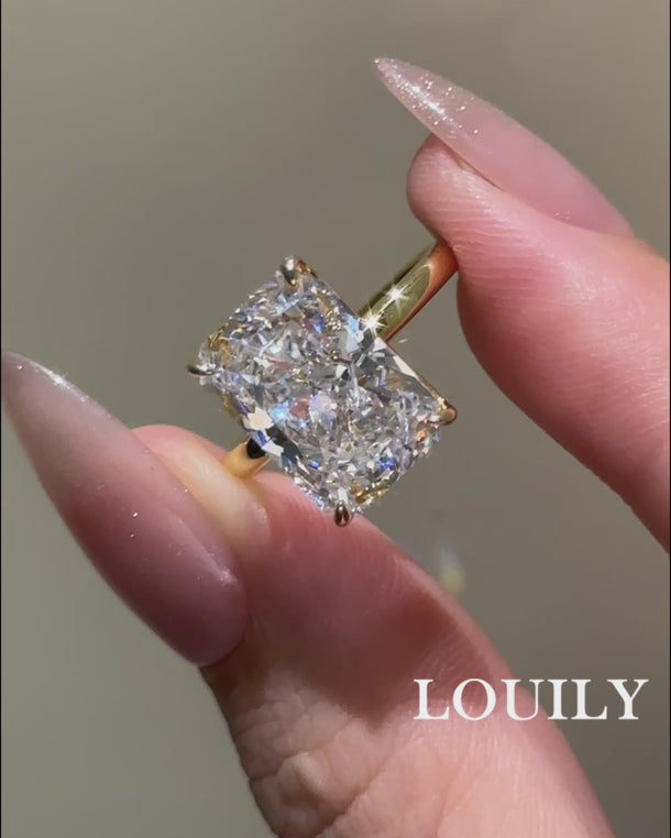 This classic 6.5 carat radiant cut engagement ring travel ring in sterling silver offers stunning brilliance with its striking cut and sleek band. Designed to shine wherever you go, it combines eye-catching sparkle with a comfortable, durable setting—perfect for travel or everyday wear without compromising on elegance.