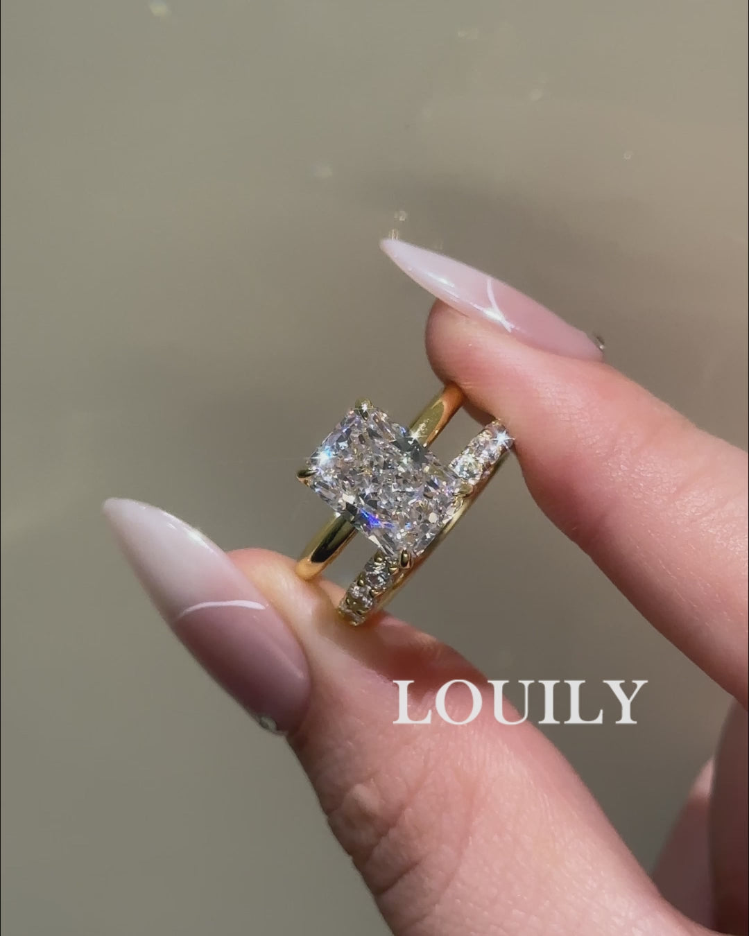 Louily 2PC 4.5Ct Solitaire Radiant Cut Wedding Set with 925 Sterling Silver