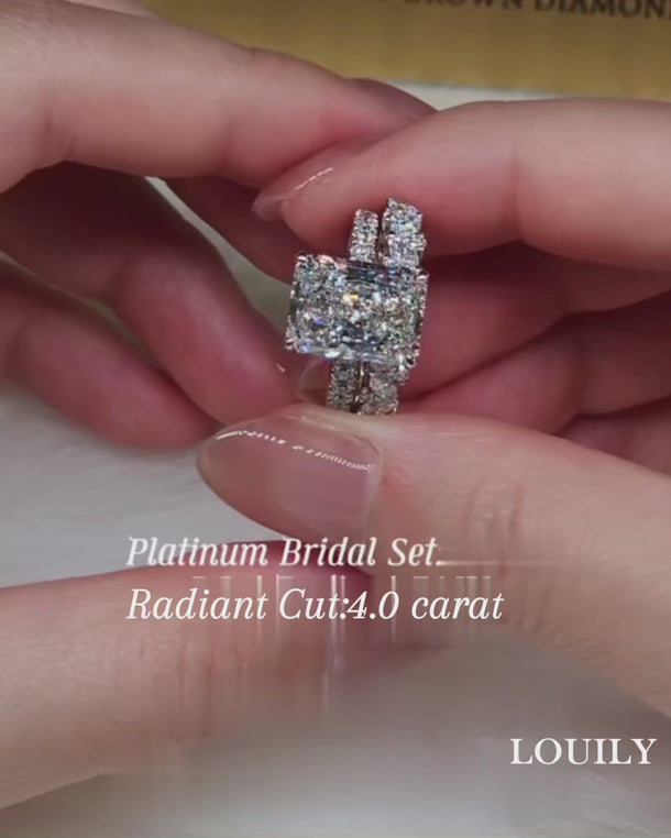 Louily 4.0 Carat Radiant Cut Wedding Ring Set With Marquise Cut & Round Cut Wedding Band