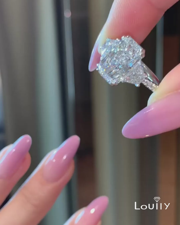 Louily Gorgeous Three Stone Crushed Ice Radiant Cut Engagement Ring