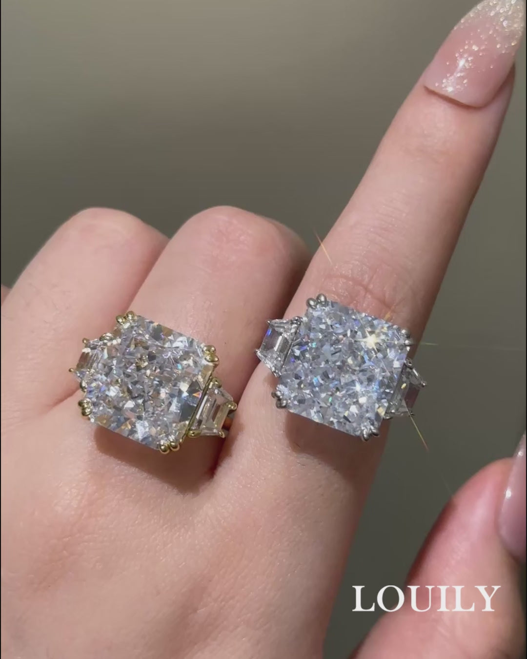 Louily Luxurious 12Ct Crushed Ice Hybrid Radiant Cut Three Stone Engagement Ring