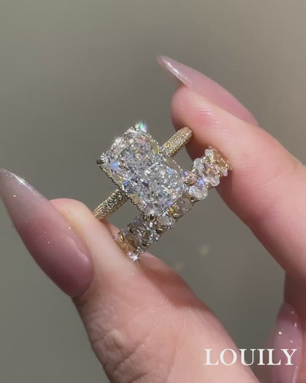 Louily Luxurious Elongated Radiant Cut Wedding Ring Set