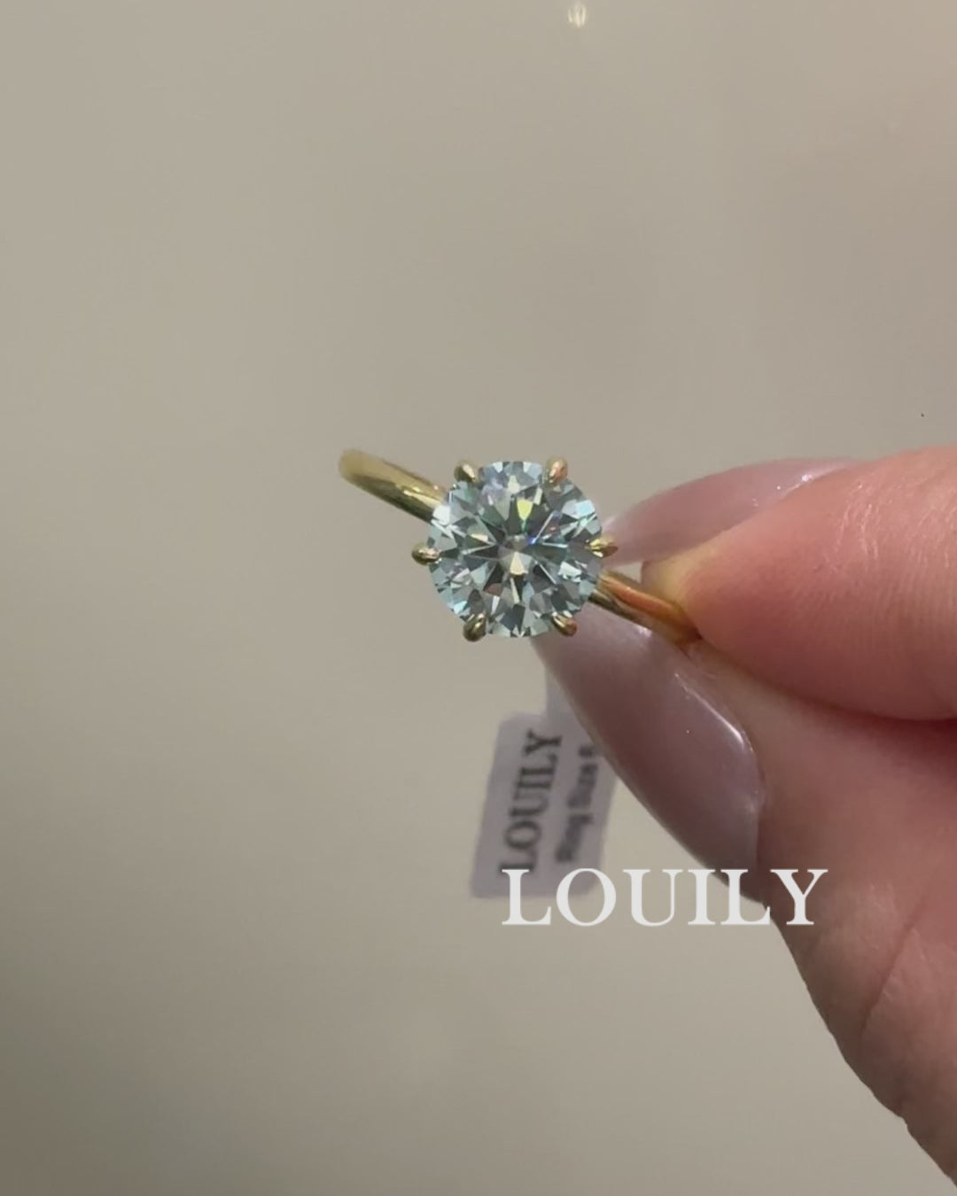 Louily Moissanite Classic Round Cut Paraiba Tourmaline Engagement Ring
