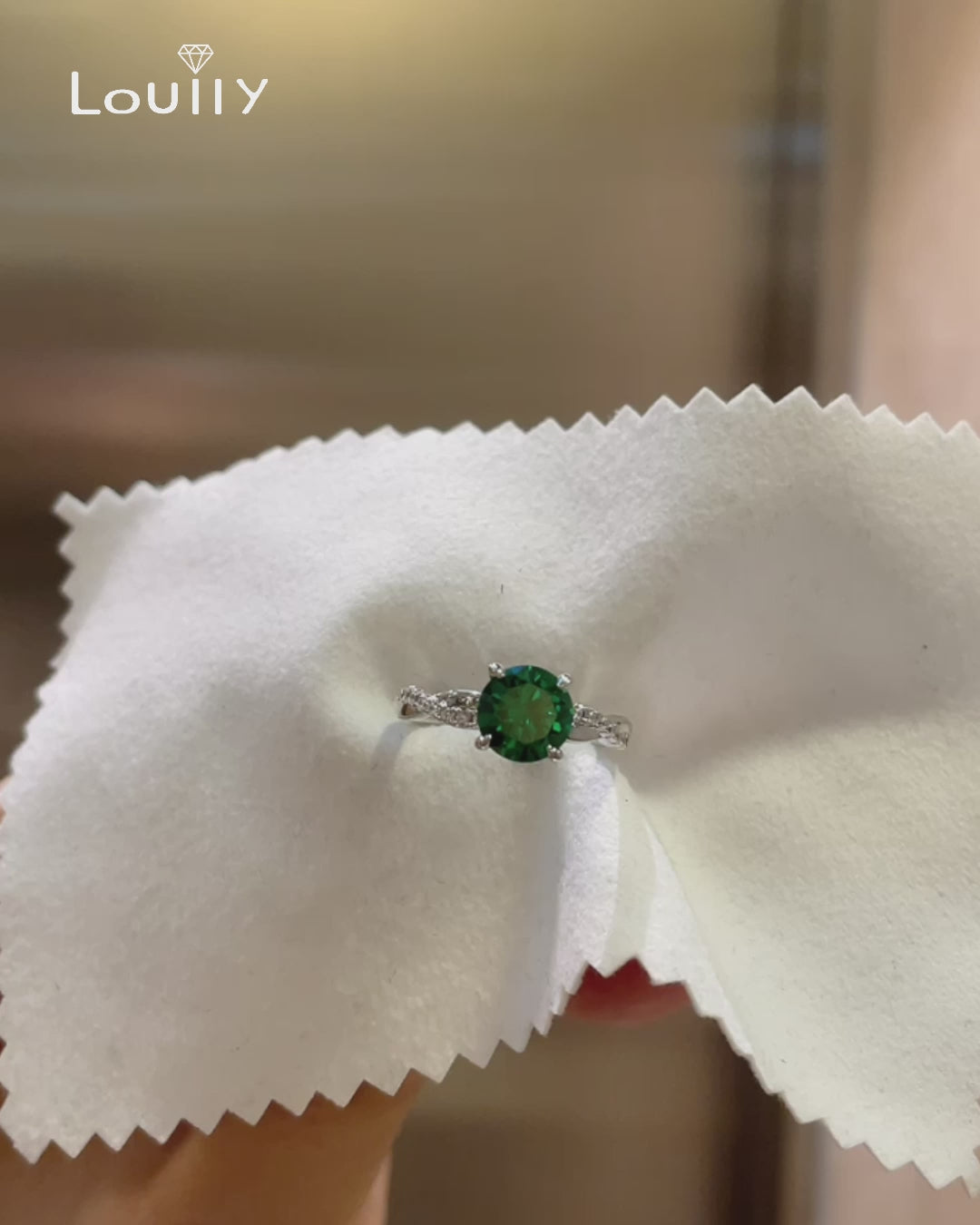 Louily Twist Round Cut Emerald Green Engagement Ring In Sterling Silver