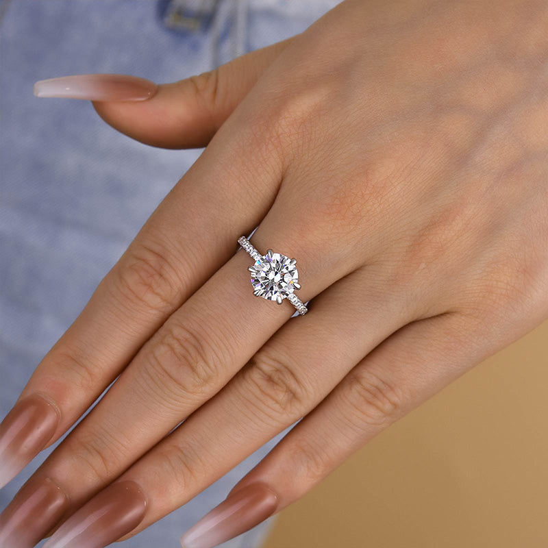 Louily Classic 6 Prong Round Cut Simulated Diamonds Engagement Ring
