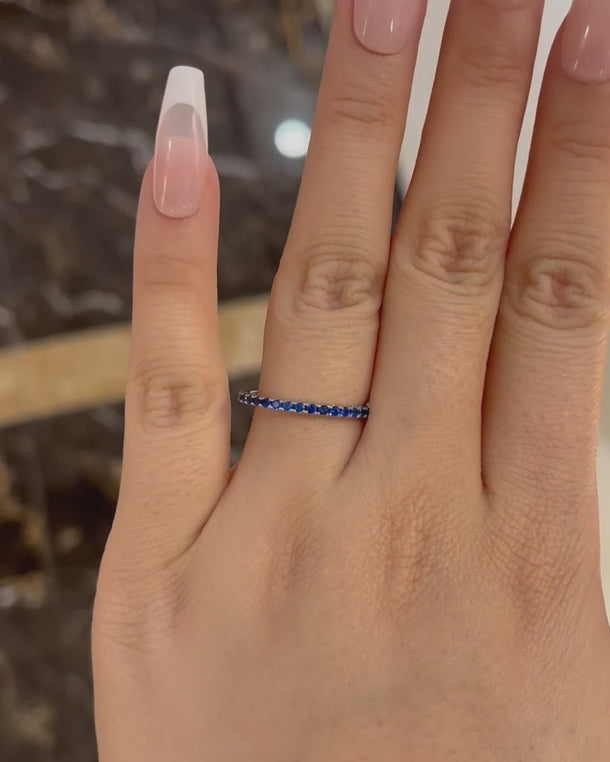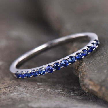 Louily Half Eternity Blue Sapphire Wedding Band For Women In Sterling Silver