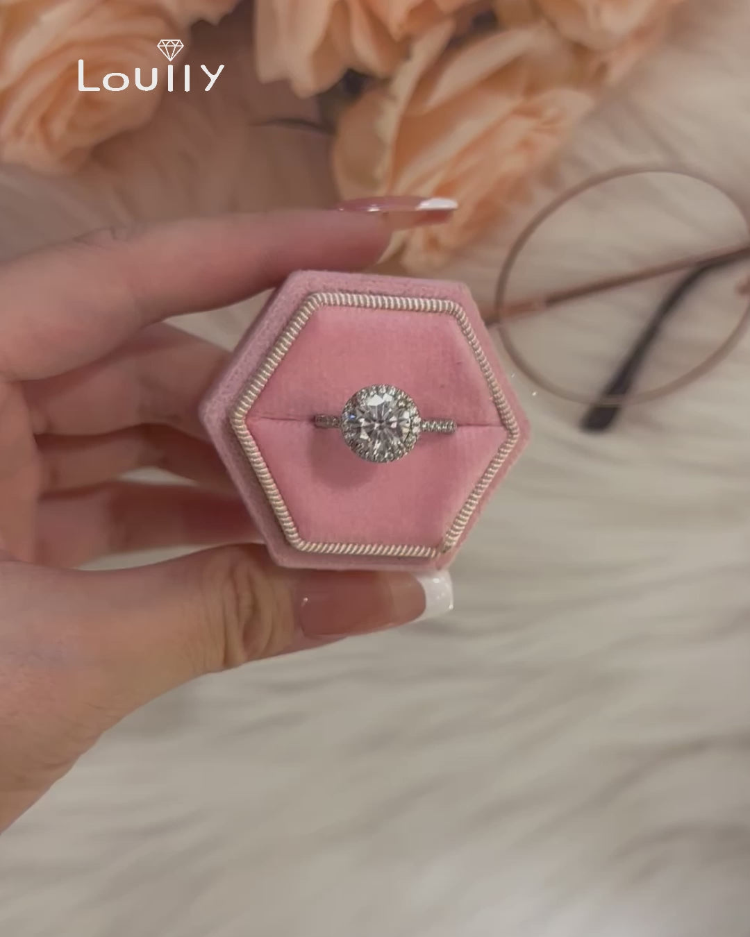 Louily Halo Round Cut Engagement Ring In Sterling Silver