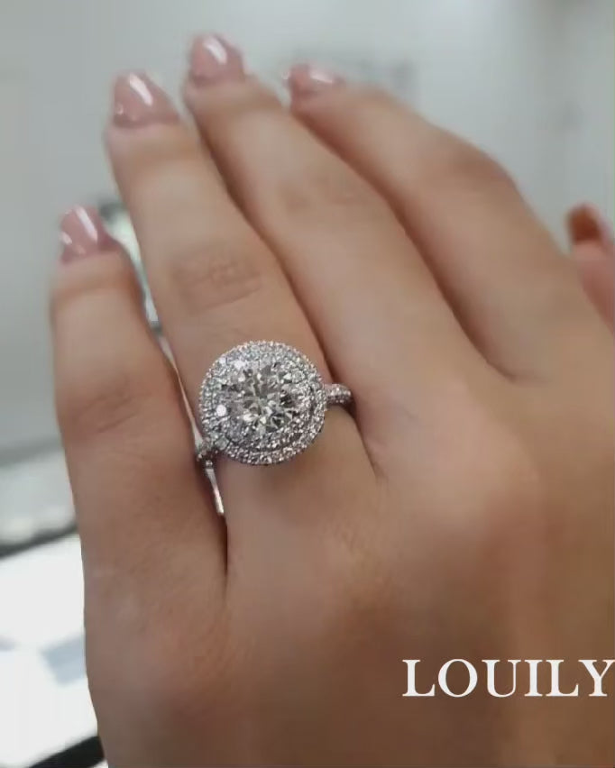 Louily Luxury Double Halo 2.0 Carat Round Cut Engagement Ring