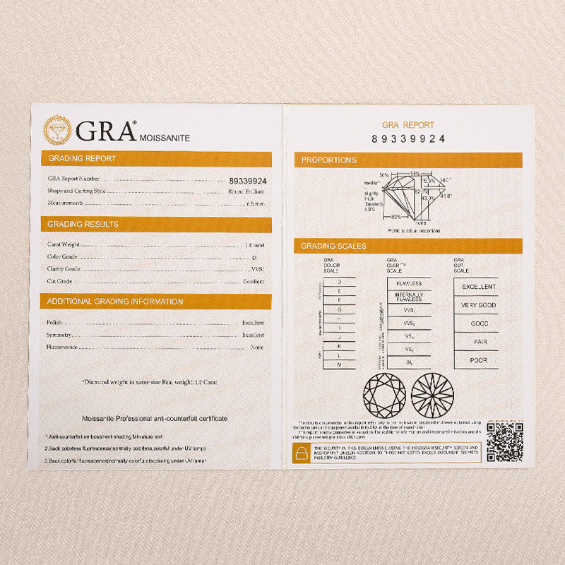 Authenticity guaranteed. Moissanite products come with a GRA certificate, giving you peace of mind and lasting trust.