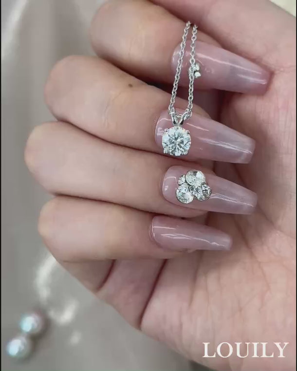 Louily Moissanite 1.0 Ct Round Cut White Gold 4 Prong Pendant Necklace