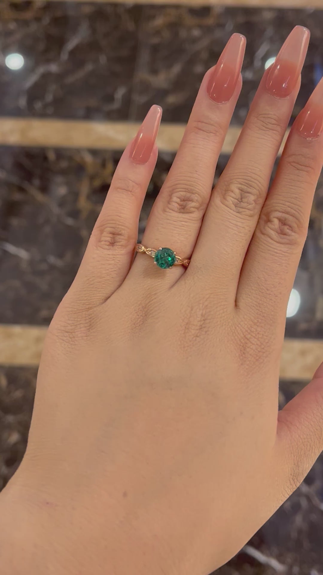 Louily Rose Gold 1.0 Carat Emerald Green Round Cut Promise Ring In Sterling Silver