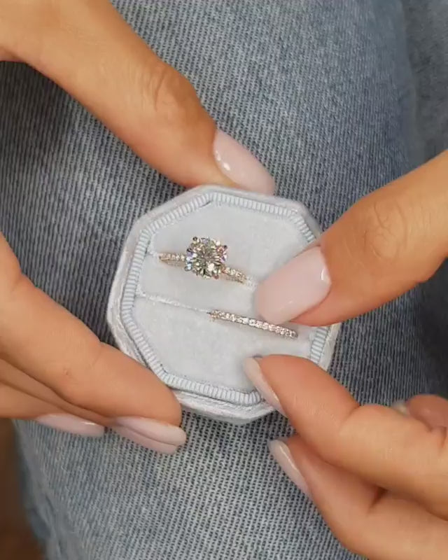 Louily Rose Gold Classic Round Cut Wedding Ring Set
