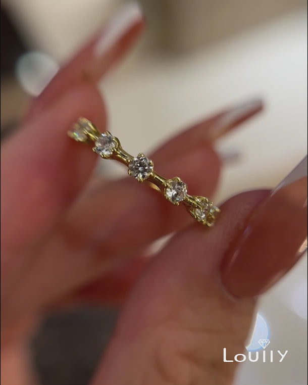 Louily Special Yellow Gold 6 Prongs Round Cut Wedding Band