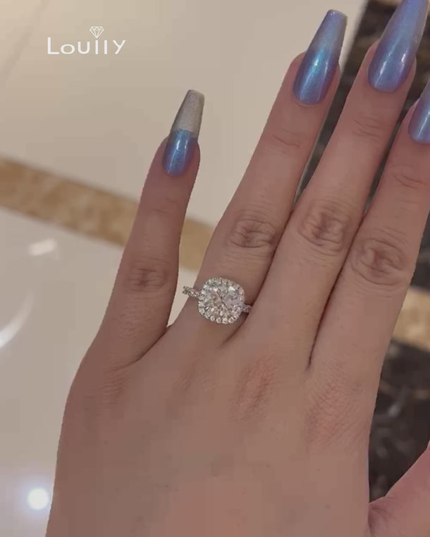 Louily Stunning Halo Round Cut Simulated Diamond Engagement Ring In Sterling Silver