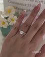 Treat yourself or surprise her with this stunning ring set! This ring set is also made of sterling silver. The band and shank of the main ring are vine designs, symbolizing eternal love. This ring set is sure to be adored by every lady.