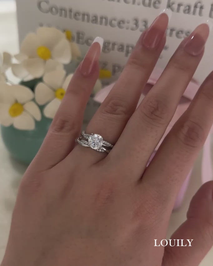 Louily Twist 1.25 Carat Round Cut Wedding Set For Her In Sterling Silver