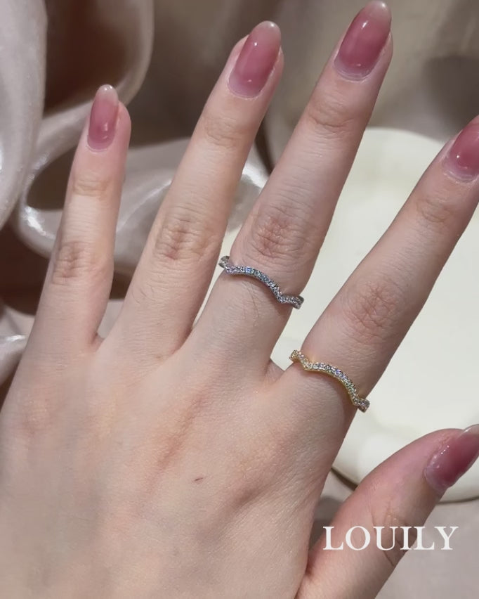 Louily Unique Curved Design Half Eternity Wedding Band For Women