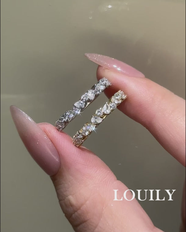 Louily Unique Half Pear & Round Cut Women's Wedding Band