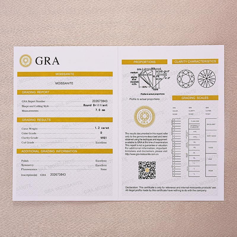 Authenticity guaranteed. Moissanite products come with a GRA certificate, giving you peace of mind and lasting trust.