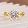 This 2.0 carat round-cut moissanite is secured by six delicate prongs and set on a twig-inspired yellow gold band. The gentle twist of the band evokes organic movement, giving the ring a natural, graceful feel while allowing the stone to sparkle brilliantly from every angle.