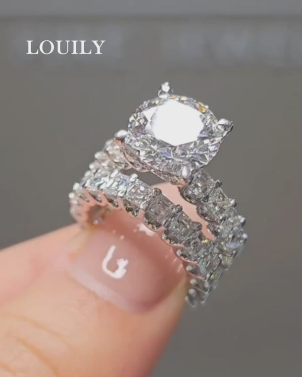 2PC Elegant 4.0Ct Round Cut Wedding Ring Set Engagement Ring With Eternity