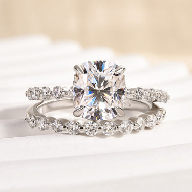 Louily Moissanite 2.0 Carat Cushion Cut Wedding Ring Set