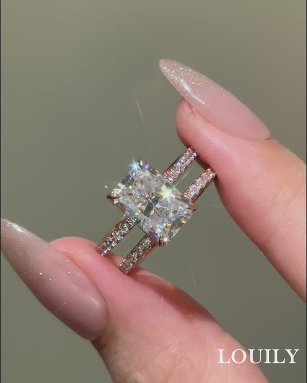 Louily Moissanite 3.5 Carat Radiant Cut Wedding Ring Set