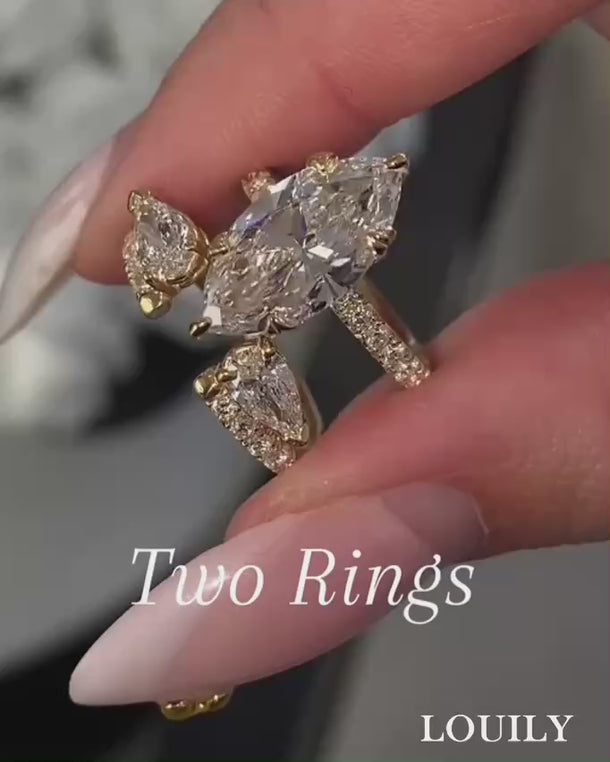 The Unique Yellow Gold 4.0Ct Marquise Cut Insert Wedding Ring Set with Pear Cut Open Insert Wedding Band is a beautifully crafted statement of love and individuality. At the center is a radiant 4.0 carat marquise cut stone, celebrated for its elongated shape and regal brilliance. Framed by a delicately designed pear cut open insert band, the set forms a layered look that feels both artistic and refined.