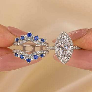 2PC Enhancer Wedding Set 3.0Ct Halo Marquise Cut Engagement Ring with Blue & White Stone Wedding Band
